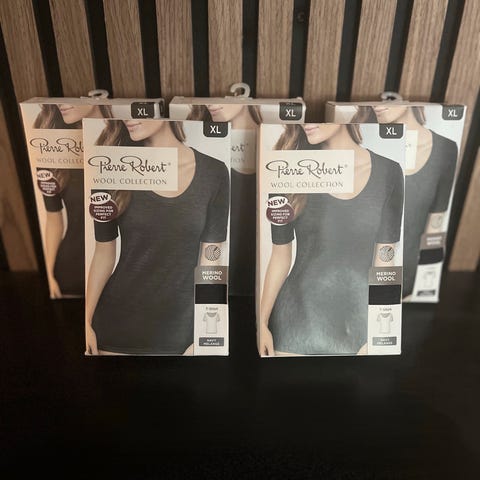 3 helt nye og uåpnede pakker med ull t-skjorter fra Pierre Robert.