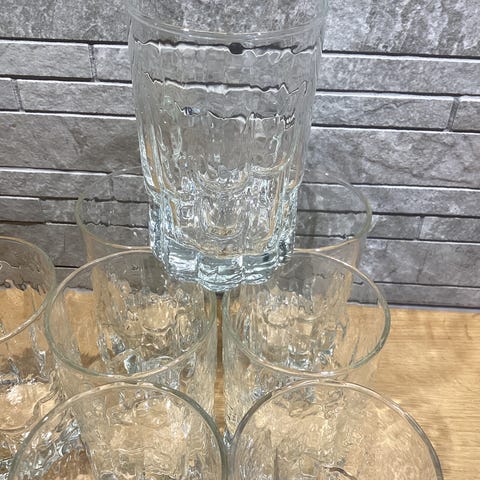 Det er 1 glass og det måler 13 cm og 6,5 i diam