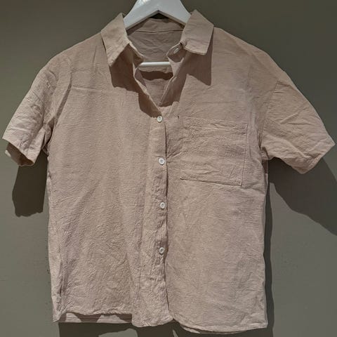 Praktisk og lett turskjorte i str. S. Kortermet, med knappelukking foran og brystlomme. Behagelig stoff som puster godt og tørker raskt – perfekt til tur, fritid eller reise.
