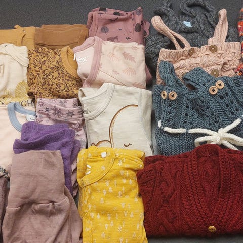 - 3 blå bodyer i str 6-9 mnd, men tilsvarer str 68. 70% merinoull og 30% polyester