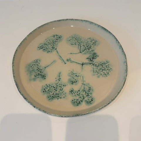 Kjeramikkfat laget av Dronning Sonja vurderes solgt. Bud over 20000kr vil bli vurdert.