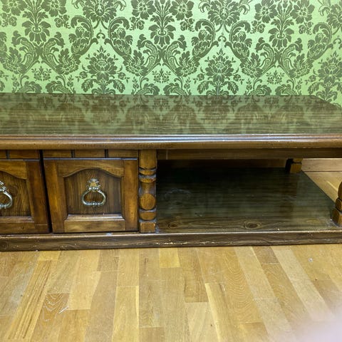 Salongbord laget av naturlig tre og epoxy