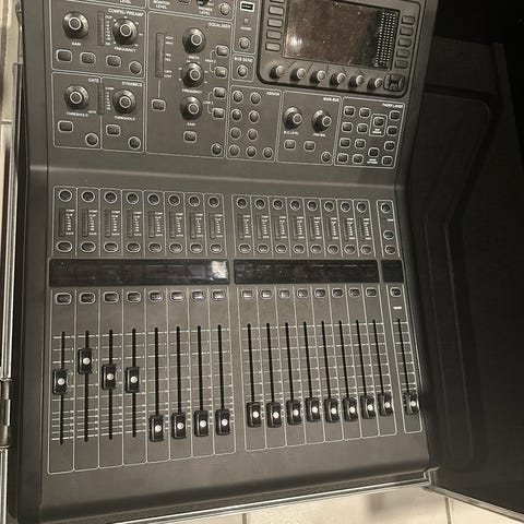 Yamaha CL1 i Norcase flight m/ doghouse og hjul og LED-svanehals-lampe og støvtrekk. Doghouse i mikser er sydd opp med Apple-router, powercon in/out og ekstra schuko-uttak. Nylig byttet CR2032-batteri, oppdatert firmware og Dante og kjørt fader-kalibrering. Pent brukt.