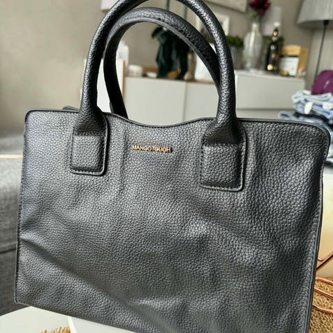 Mango dame veske laget av andre materialer i rød farge. Vesken har to skulderstropper og en frontlomme med glidelås. Innvendig har vesken flere rom for oppbevaring, inkludert et rom med glidelås.