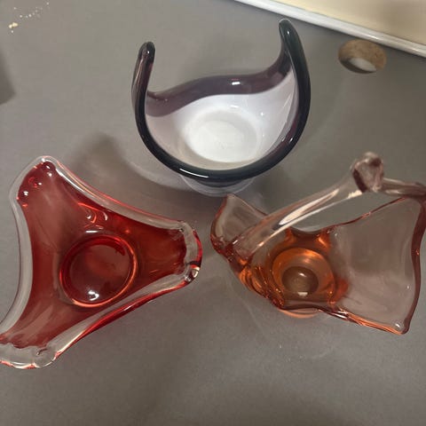 Det blå fatet er helt spesielt vakkert. Har aldri sett noe lignende. Dette fatet trekker prisen opp.