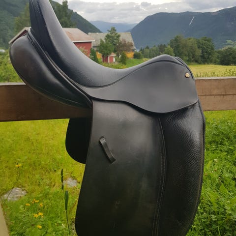 Salen er lite og pent brukt og brukt på en lett bygd Shetlandsponni. Salen er 34,5 ca. i lengde, usikker på bom.