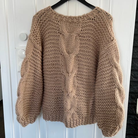 Hjemmestrikket genser i pusegarn- ny pris