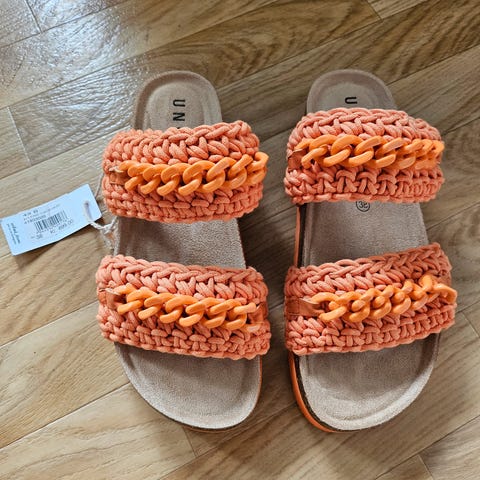 Nydelig sandaler fra Unified i nydelig oransje/korall farge i strl. 39. Lite brukt. Ekstremt gode på foten. Selges grunnet flytting.