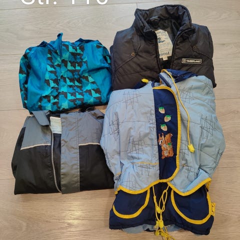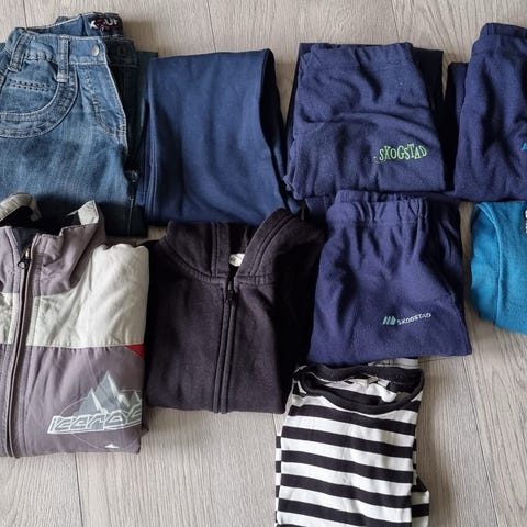 Klærne er i størrelse 116, 122 og 128. Jeg har tatt ekstra bilder av de klærne som syntes minst på hovedbildet.