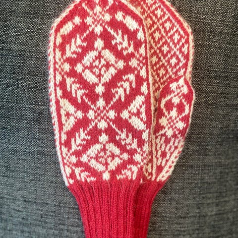 Rosa høstflette votter strikket i sportsragg som er 60% ull, 20% nylon og 20% akryl
