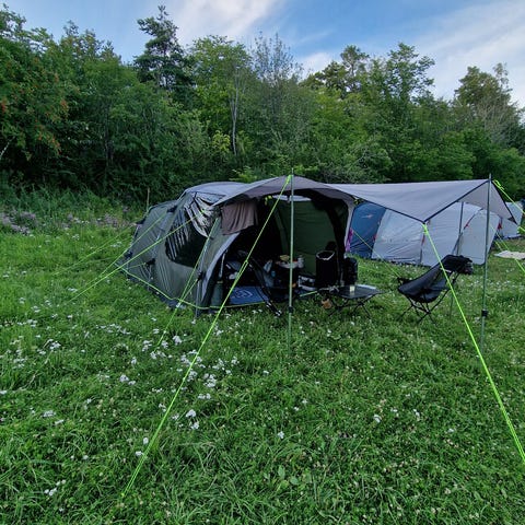 Selges pga overgang til 1-2 mannstelt. Vært utrolig fornøyd med det, men vil nå ha et lettere telt! En inngang.God plass til mye bagasje. Footprint følger med ( nytt koster ca 700kr). . Noen ekstra teltplugger følger med, da jeg syns de originale er litt vonde å bruke der det er mye stein. Liten ubetydelig rift ved inngang til teltstang. Alltid luftet og tørket godt etter hver tur, men mulig det ligger att litt brask i innerteltet etter siste tur.