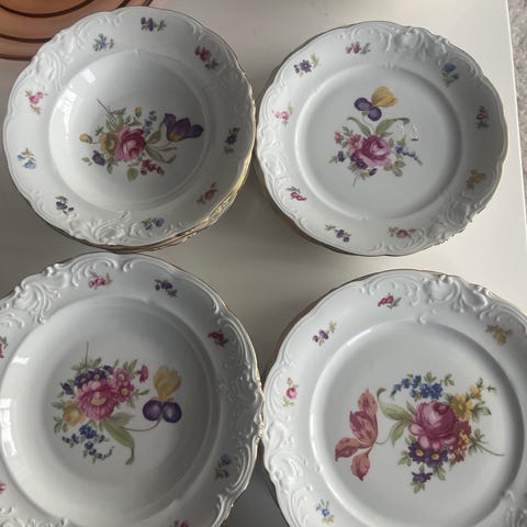 4 stk i veldig bra stand. Merk: på bilde 1 er det 3 flekker på det hvite. Det er i glasuren/ porselenet, så der er ikke påført skade.