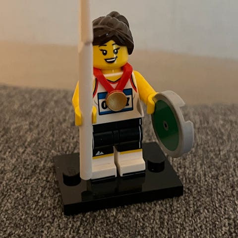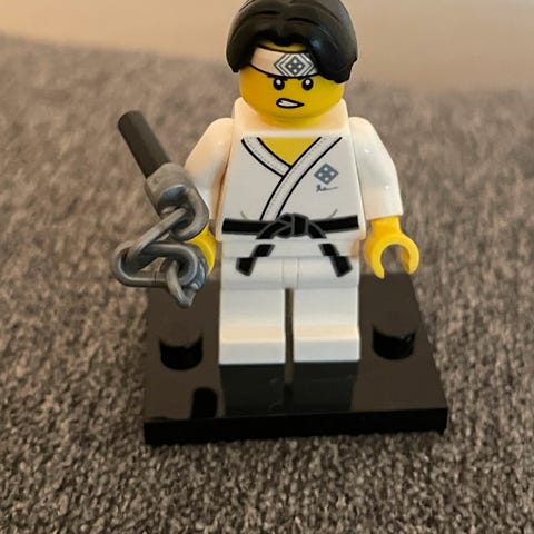 Figuren er montert og komplett med tilbehør og plate. Fremstår som ny.
