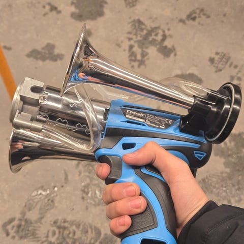 7-Tone Alari Horn DC 12V - 120dB Høy Multitone Klaksonhøyttaler med Fjernkontroll, Passer for Motorsykler, Biler, Lastebiler, Bobil og Båter, Sikkerhetstilbehør til Kjøretøy, Slank Design, Holdbar Konstruksjon, Uten Batteri