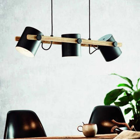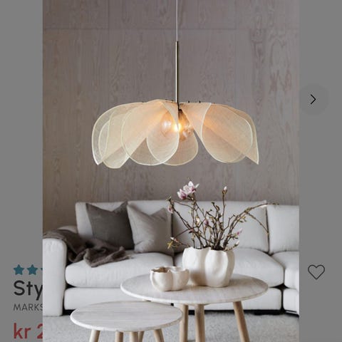 Lampa gir direkte lys over spisebordet, men hvis du vil ha god generell belysning, kan du henge den nærmere taket.