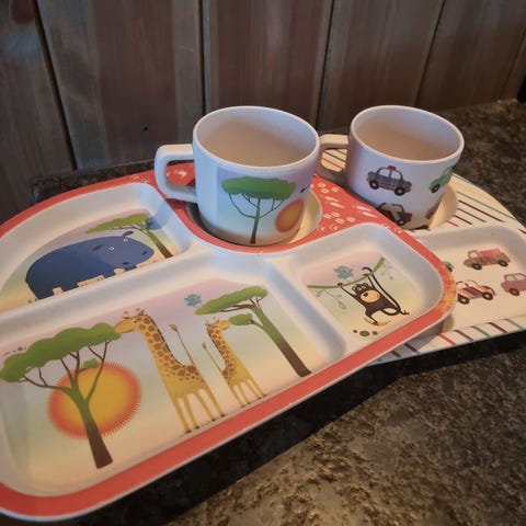 4 stk bambu tallerken og 2 sølv tallerken 600kr alt