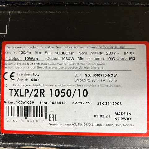Øglænd System GS Varmekabel 1200 W 10 m²