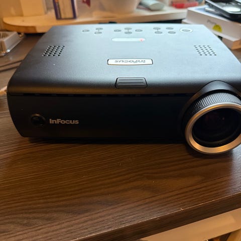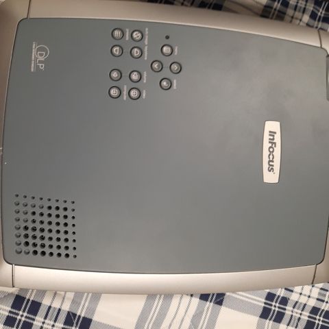 InFocus projektor med flere tilkoblingsmuligheter inkludert VGA, S-video og komposittvideo. Enheten har innebygd høyttaler og justerbar linse for fokus. Leveres med en beskyttende bæreveske. Egnet for presentasjoner og multimedia visning.