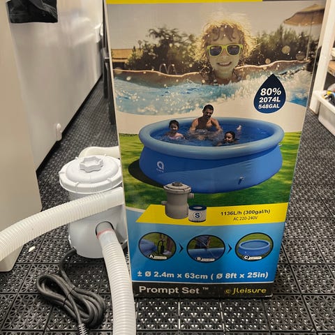 Rundt basseng med diameter på 3 Produktet inkluderer bassengduk, ramme, stige, pumpe og tilbehør for montering. Egnet for utendørs bruk som et midlertidig svømmebasseng. Nytt 2024, brukt en gang