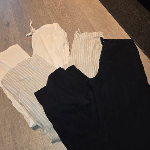 3 Lin bukser, blå, beige og svart + en Linn shorts , str 146, fra Cubus , pen brukt, hentes i Moss eller sendes fiks ferdig.