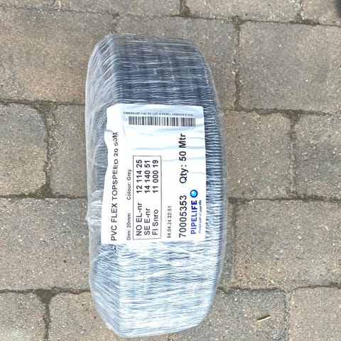 PR 2x2,5/2,5, PR-kabel, PFXP, 2x2,5 + jord, 2,5 mm², 2.5mm2, installasjonskabel, fast installasjon, 16A kurs, stikkontakt-kabel, jordleder, el-kabel, elektriker, boliginstallasjon, restlengde, 7 m, 7 meter, kabelrest, lavvolt 230V, innendørs kabel, hvit PR, PR-ledning, el-materiell, oppussing, småprosjekt, verksted, garasje, elektroutstyr