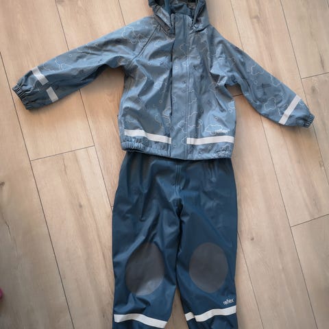 PyttPytt regntøy, jakke + bukse 8 år, veldig lite brukt! Meget pent sett. Avtagbar hette.