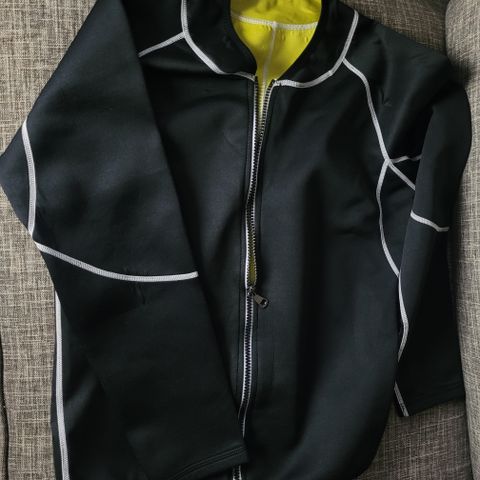 vanntett jakke i blå og svart farge. Størrelse 14. Drakten er laget for bruk i vannaktiviteter og er designet for å gi beskyttelse og komfort under vannsport.