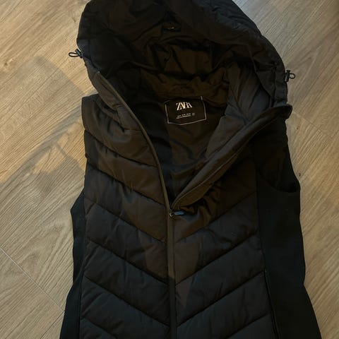 Svart damevest i størrelse XXL med glidelås foran og to lommer med glidelås. Vestens materiale og vedlikehold - se bilde . Praktisk og komfortabel - et flott ytterplagg.