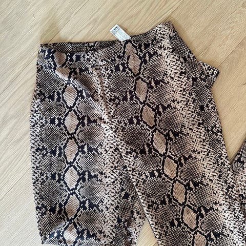 Zara bukser i størrelse S med flerfarget mønster. Bukser med slangeinspirert design, laget for kvinner. Helt nydelig å ha på seg, flott passform, normal str. S.