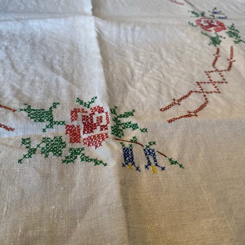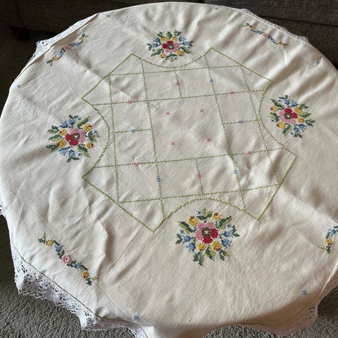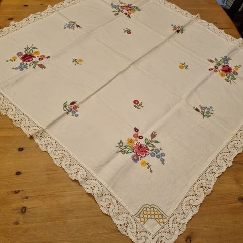 Håndbrodert kaffeduk med blonde