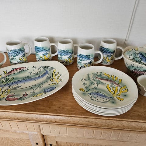 1 stk fat H ca 4 cm litt høyere på sidene L 38,5 cm B 29 cm det er krakkelering og noen mørkere striper på fatet