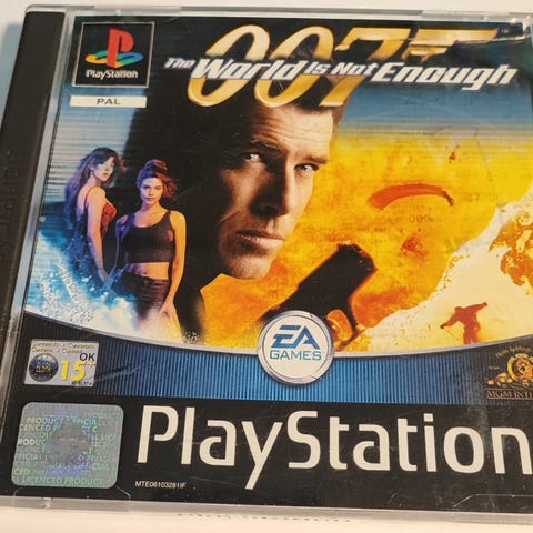 007 The World Is Not Enough til Playstation 1. Kun disk. Testet til oppstartsmenyen. Disken har noen riper.