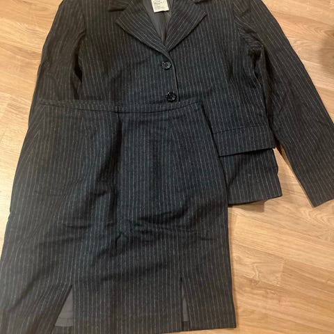 Gammel, retro, vintage drakt: Skjorte/bluse og skjørt. Den har tilhørt min mormor, som var født i 1905. Hun kjøpte trolig denne på 40- eller 50-tallet. Drakten er veldig pent / lite brukt.