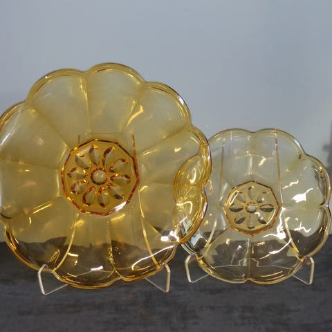 Hadeland Løv skåler og asjett , rav glass 50 tallets