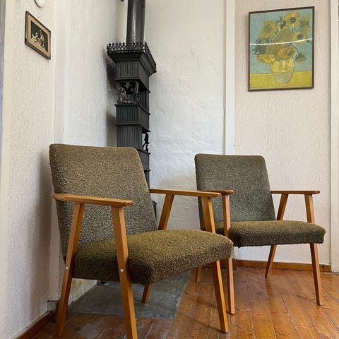 Retro lenestoler i teak, eik og ull