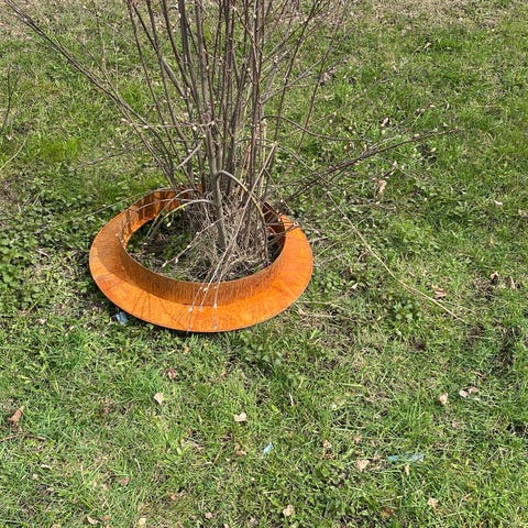 Diameter ytre ring ca 100 cm- diameter indre ring ca 60 cm . Ringene er ca 1 år gammel. Rustfarget .