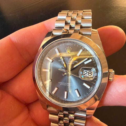 Brukt daglig så ja en dem bruksspor, upolert for å vise tilstand. Kun klokke, kjøpt av Blomqvist på Fornebu.