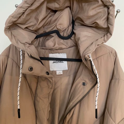 Mørk sennepsgul lang jakke fra Monkel.