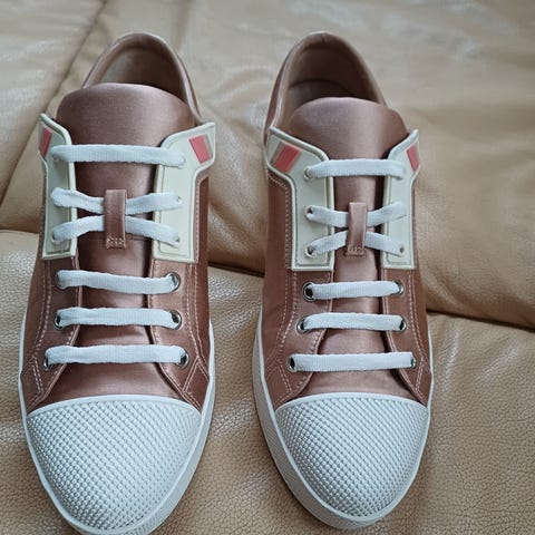 Prada Sneakers joggesko i størrelse 39, hvit farge. Skoene har snøring og er laget i materialer som gir et rent og stilrent utseende. Egnet for daglig bruk og ulike anledninger.