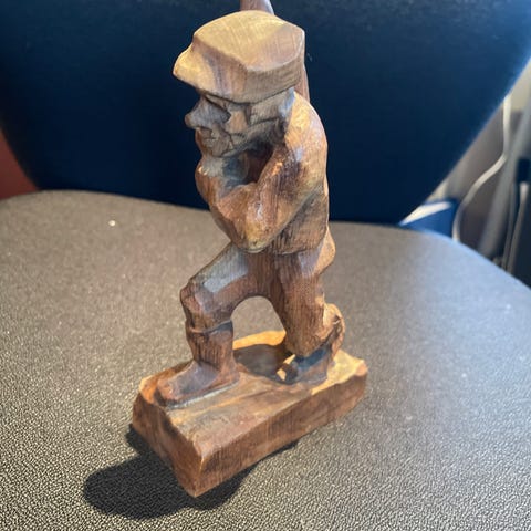 3 stk håndskåret trefigurer selges samlet .