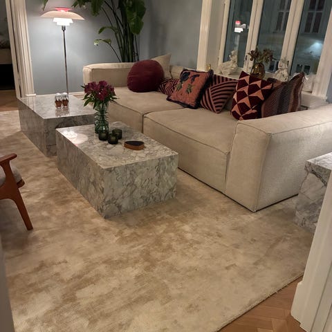 Teppe, tepper, beige, grå, grå-beige, greige, design, interiør, velour, velur, viskose, design
