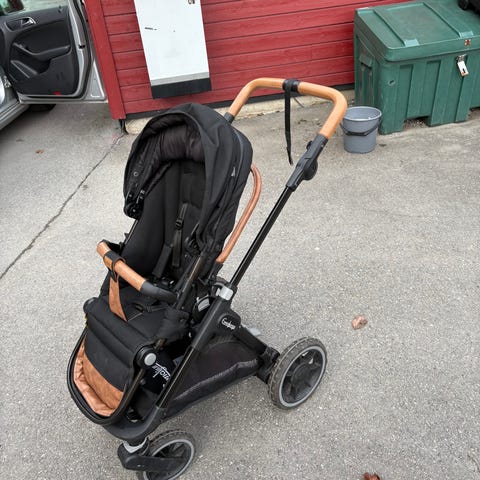 Emmaljunga barnevogn med vognbag, beige, svart ramme