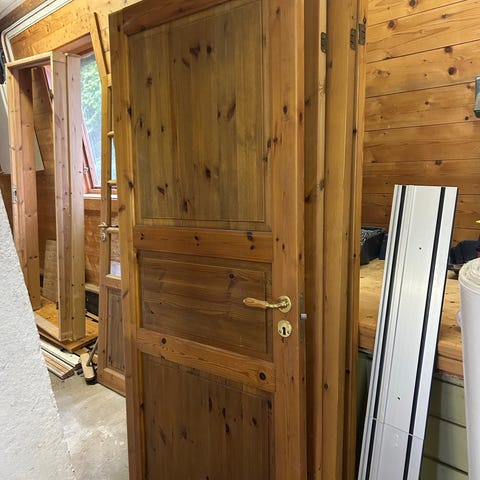 2 stk. innerdører selges fordi vi ikke har behov for de. De er i tre og har en enkel, klassisk design. Egnet for innvendig bruk i bolig eller hytte.
