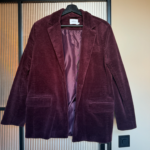 Denne blazeren har en oversized passform.Sammensetning Ytterstoff: 50 % resirkulert ull og 50 % polyester. Innerstoff: 100 % polyester