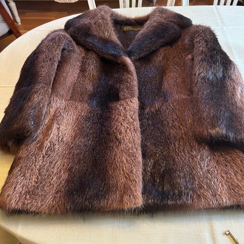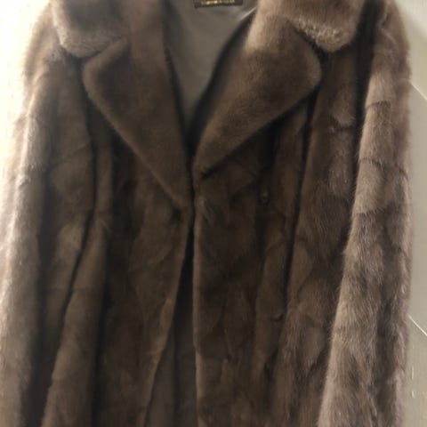Nydelig brun Mink Poncho med V-hals og hempe. Brukt 1 gang. Vakker glans, god og varm . Sydd om fra kåpe, hos Pelsatlier i Tønsberg.
