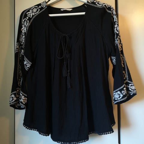 Søt bluse i viskose. Noen bruksmerker, men kun synlig hvis du går nøye etter sømmene.