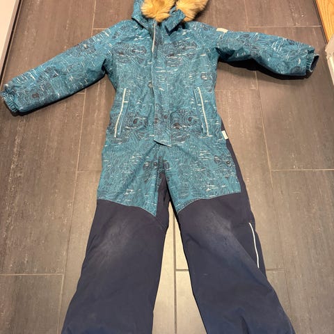 Godt brukt vinterdress og bukse. Ingen hull, men en refleks er litt løsnet på dressen (se bilde).