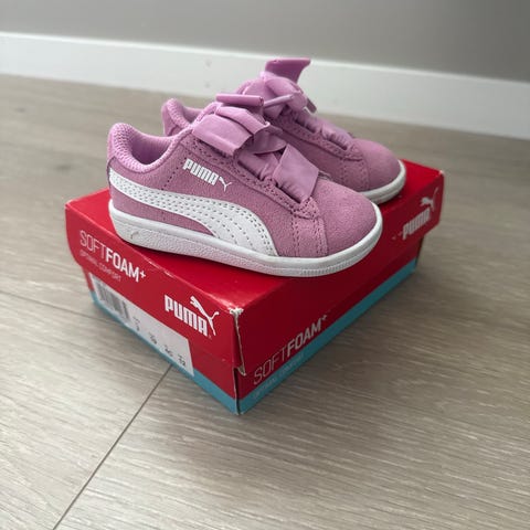 Hummel barnesko for jenter i størrelse 19. Skoene er rosa med hvite detaljer og har en kombinasjon av mesh og syntetisk materiale. De har borrelåsfeste for enkel justering og påkledning. Sålen er laget med AirTech-teknologi for bedre komfort.
