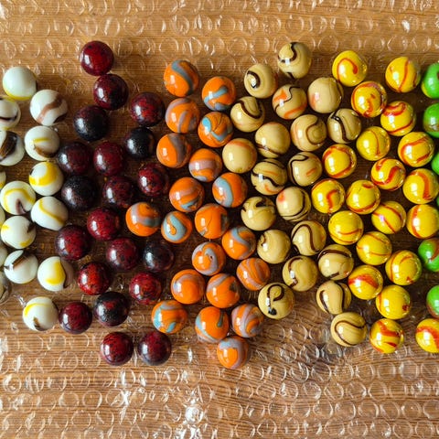 Dekorkuler i ulike farger og størrelser. Egnet for dekorasjon, hobbyprosjekter eller spill.