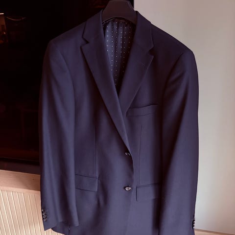 Blazeren har fiskebensmønster og er i 65% bomull og 35% ull
